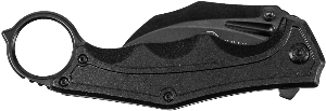 CABO (MATERIAL) – METAL LAMINA (MATERIAL) – ACO INOX 420 LAMINA (ACABAMENTO) – ESCOVADO LAMINA (REVESTIMENTO) – PRETO FOSCO LAMINA (DUREZA) – 52-54 HRC LAMINA (COMPRIMENTO) – 70 MM LAMINA (ESPESSURA) – 2.5 MM COMPRIMENTO (ABERTO) – 187 MM COMPRIMENTO (FECHADO) – 127 MM MECANISMO DE ABERTURA – ANEL DE TEFLON